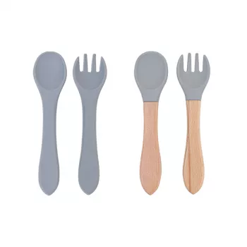 4PCS Silicone Baby Spoon & Fork Set with Wood Handle – BPA Free Training Utensils
