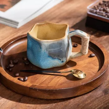 Rustic Japanese Pottery Coffee Mug with Rope Handle
